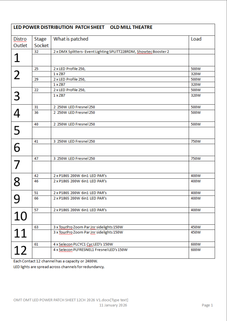 Old Mill Theatre Lighting Plan 17 January 2026